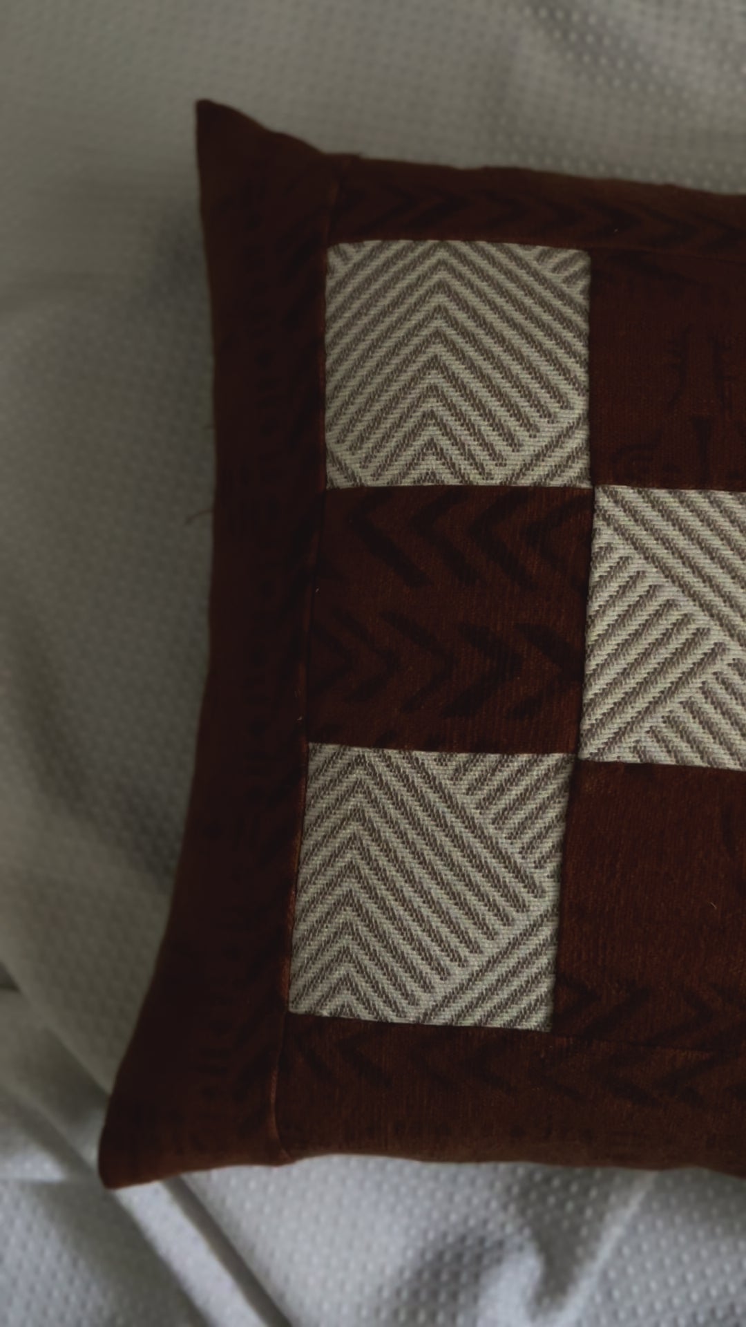 Crafted from tactile rust velvet and woven chevron fabric, Ancestor brings warmth and balance. Its design is both honoring and contemporary—an homage to the ones who came before us, wrapped in modern form. Cozy up to your roots with this heirloom-quality cushion.