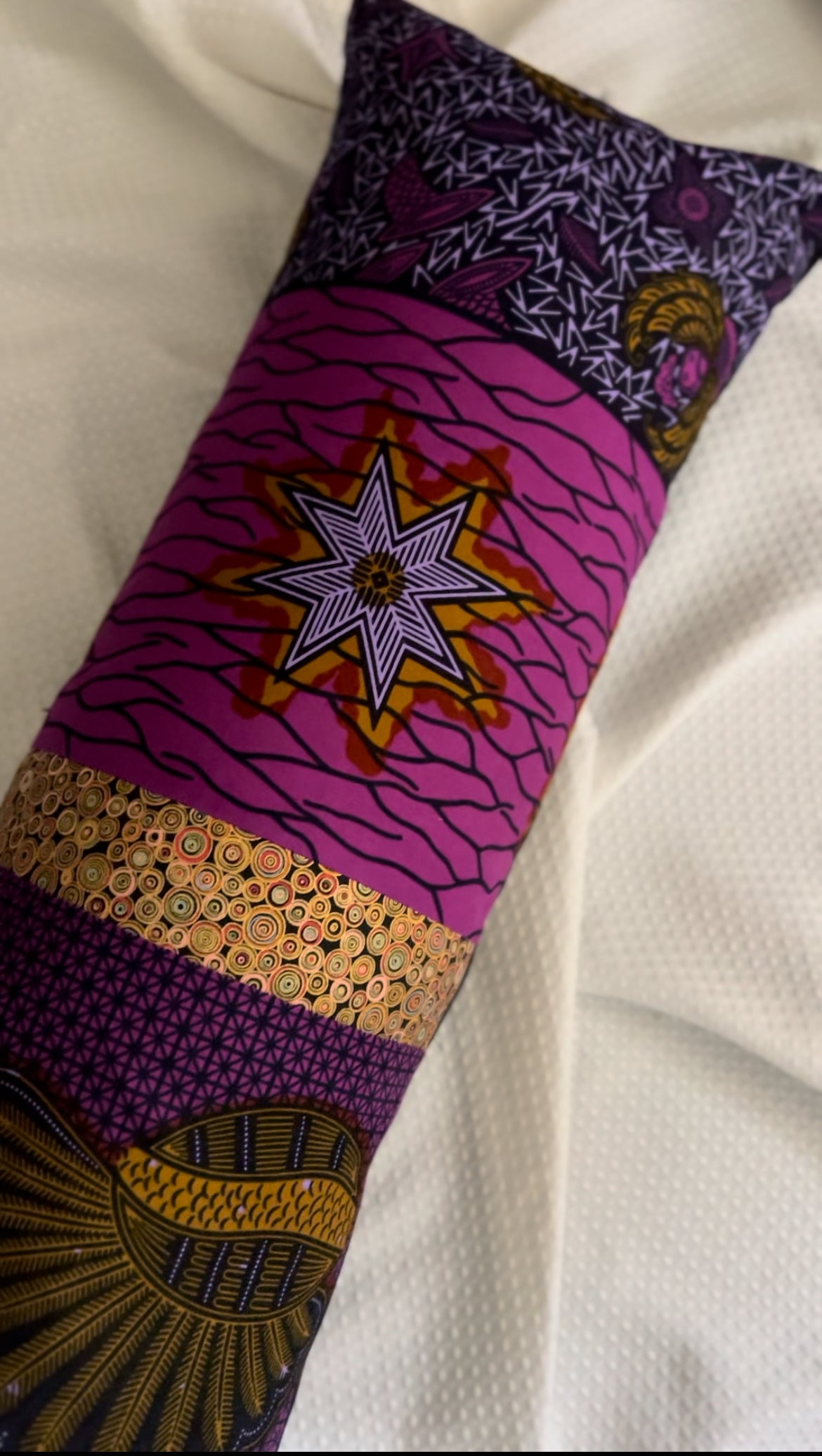 Blending earthy tones with geometric symmetry, Bloodline is a modern lumbar that draws its power from the past. The structured patchwork of African-inspired prints honors ancestral design traditions while creating a sculptural, contemporary statement. Its elongated form echoes the thread of lineage — long, enduring, and rich with meaning. Whether grounding a bed or anchoring a layered sofa, this piece speaks to continuity, strength, and the beauty passed down through generations.